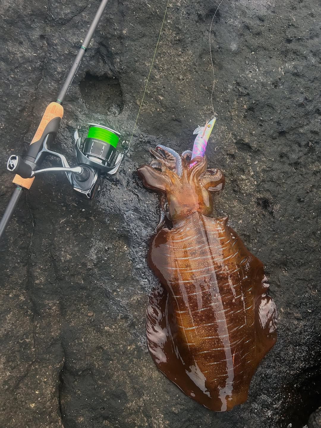 ほぼ、セミオートマチックで烏賊が抱きやすくなるように、考えて作ってるので、3回シャクってフリーフォールで、簡単に抱いてきます