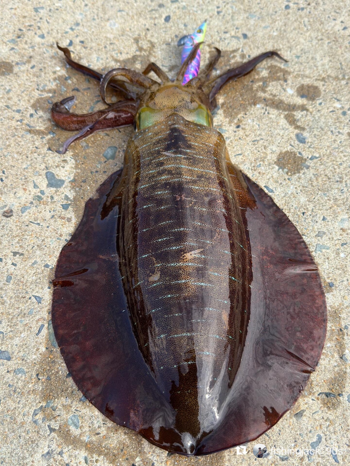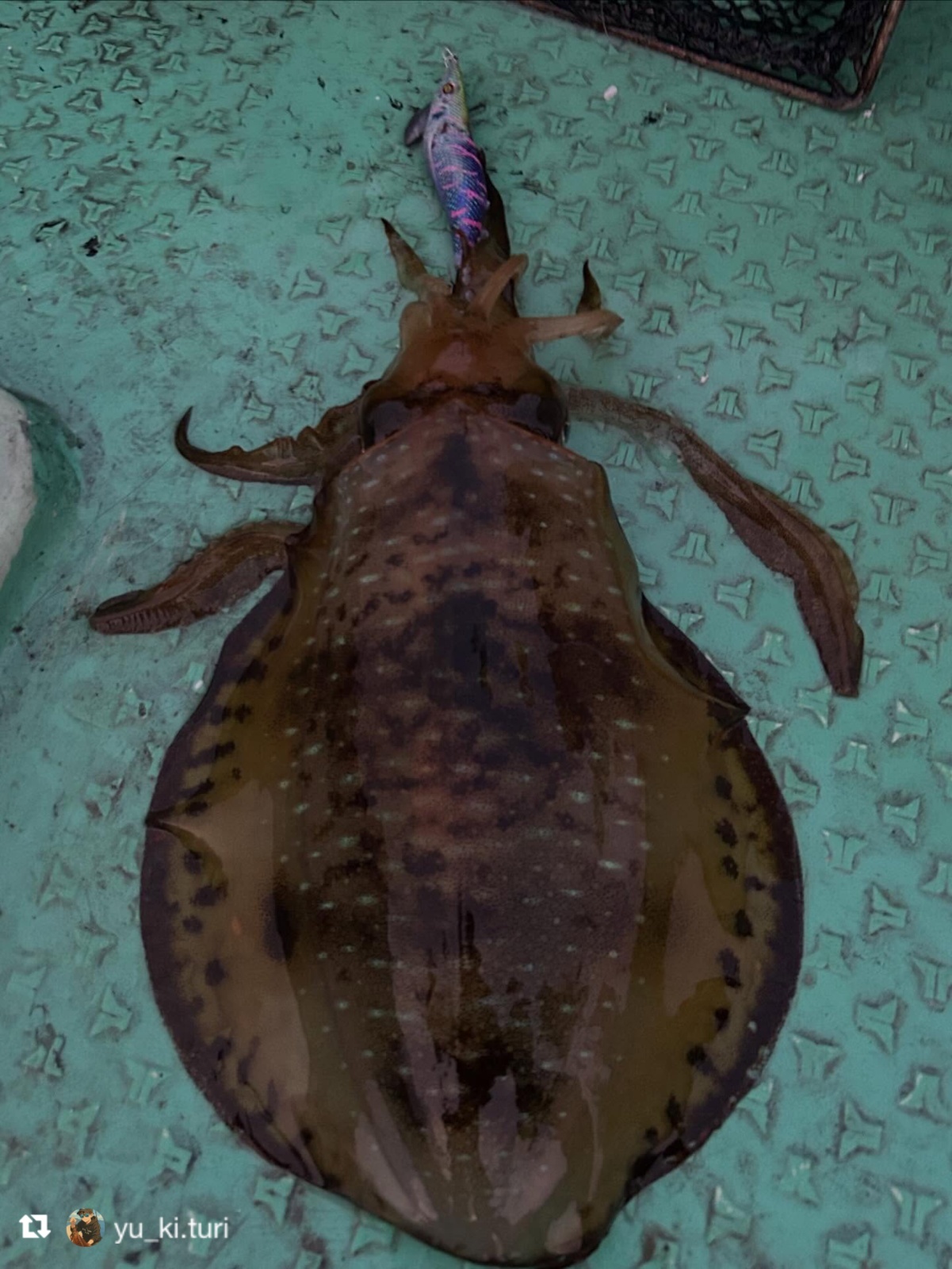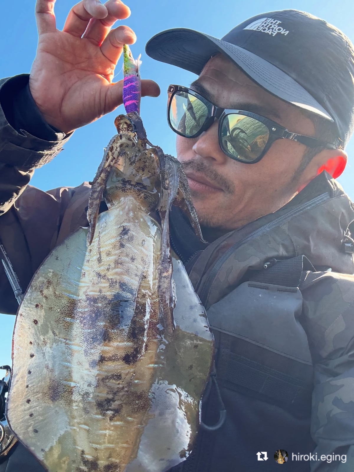 イカがエギに抱きつくと